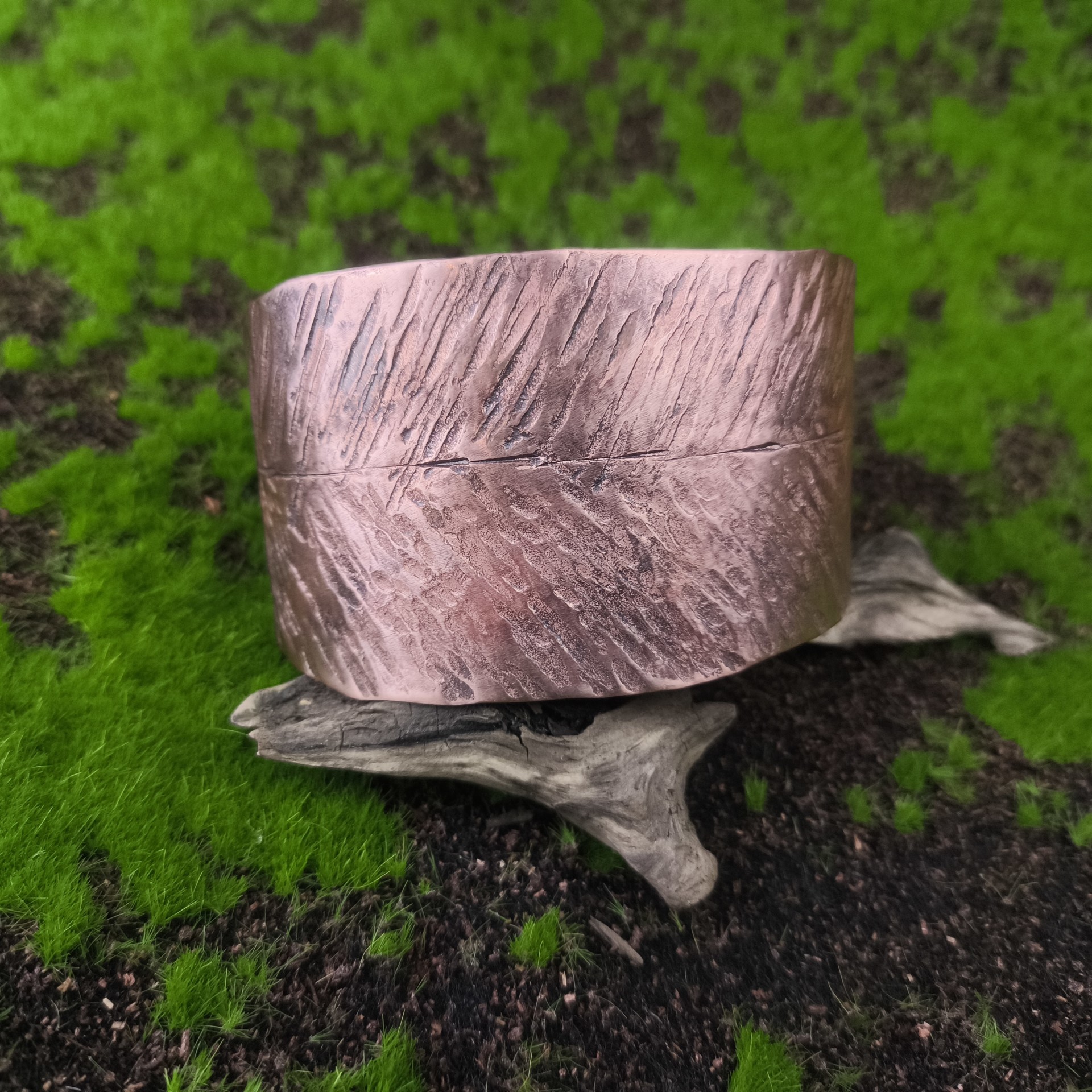 Bransoleta miedziana. Ręcznie robiona z miedzi. Otwarta, przez co można wyregulować ją do własnego nadgarstka. Szerokość ok. 4,4cm. Raczej na większy nadgarstek.
