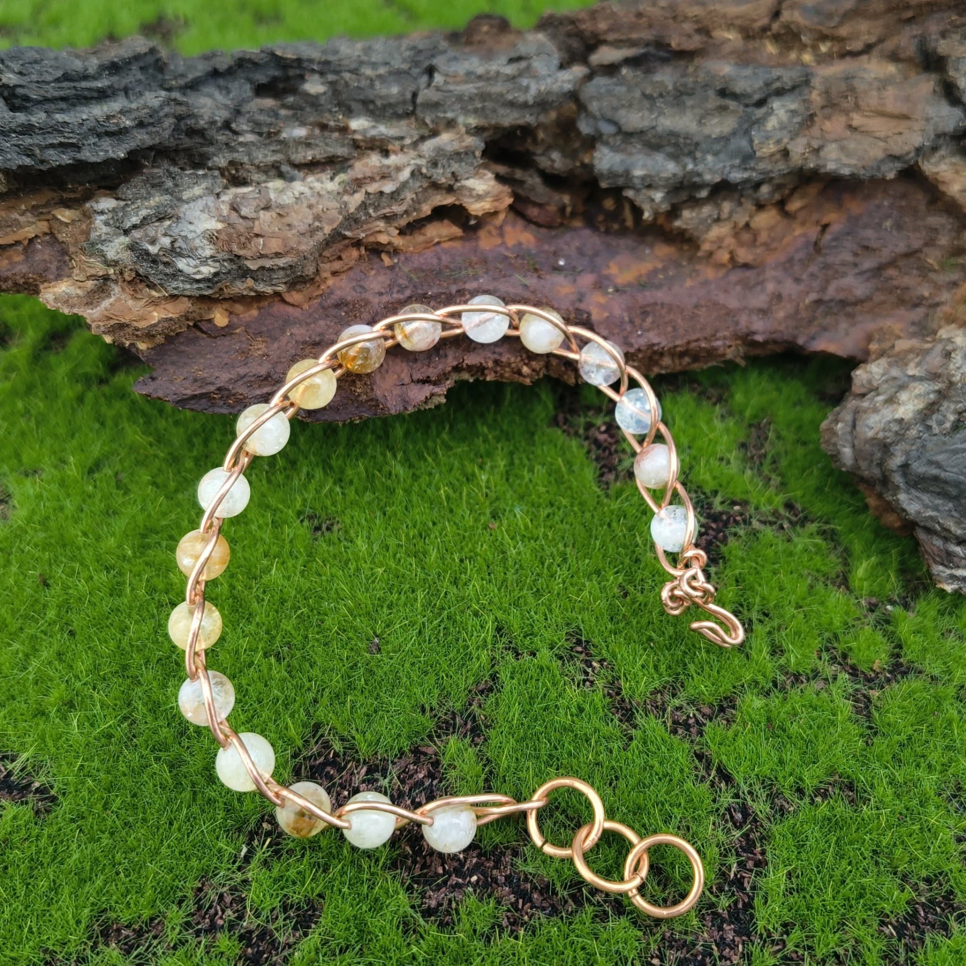 Ręcznie pleciona bransoleta z miedzi z kamieniami naturalnymi jakimi w tym przypadku jest Cytryn.
