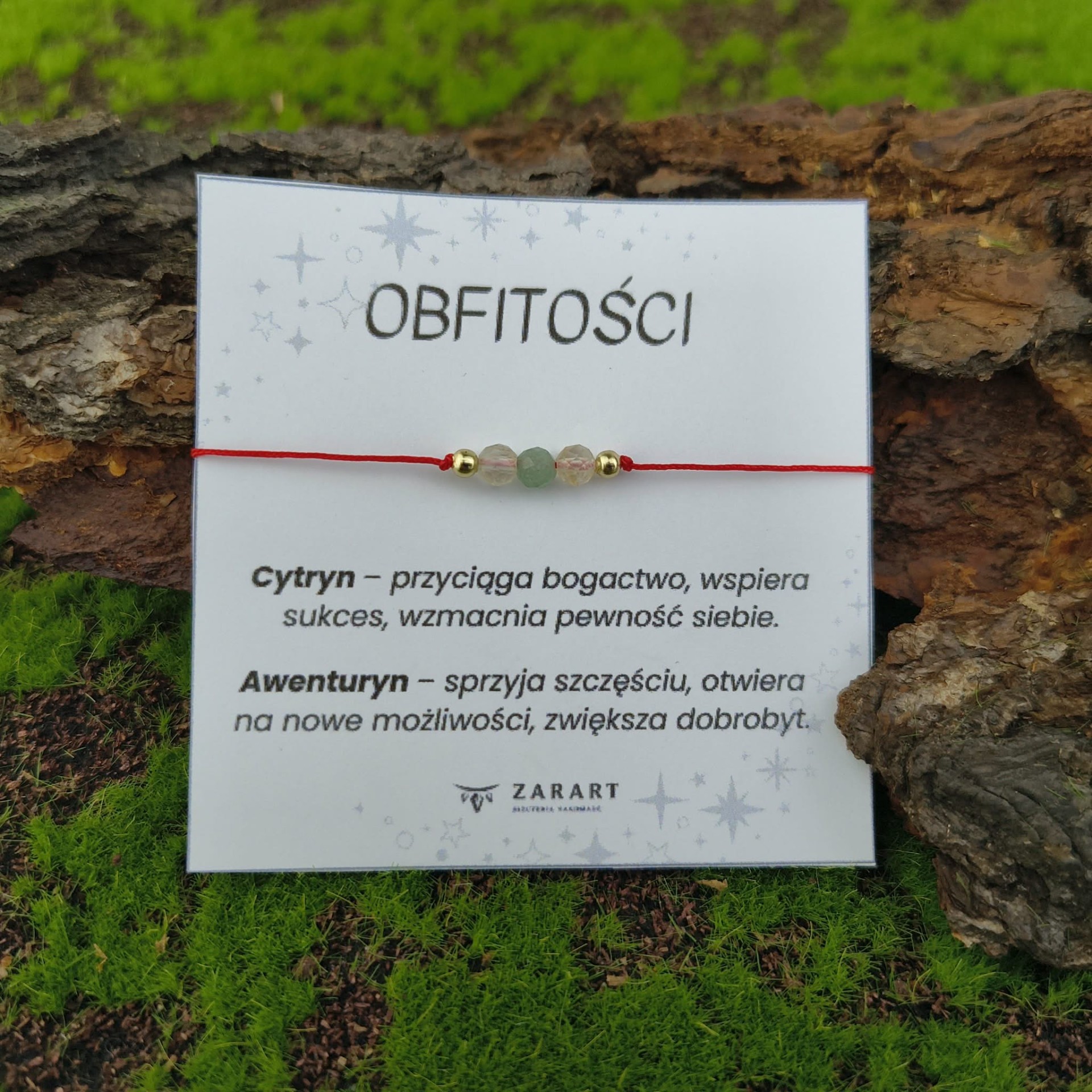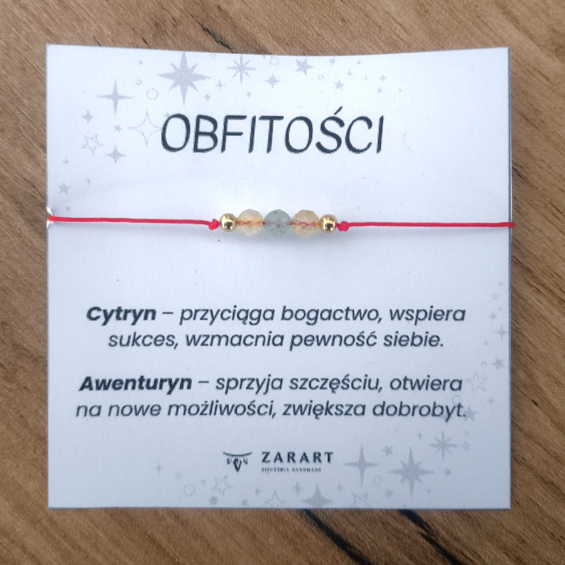 - Cytryn / Awenturyn – połączenie sukcesu i szczęścia. Awenturyn wzmacnia optymizm, otwiera na nowe możliwości i pomaga w podejmowaniu korzystnych decyzji.