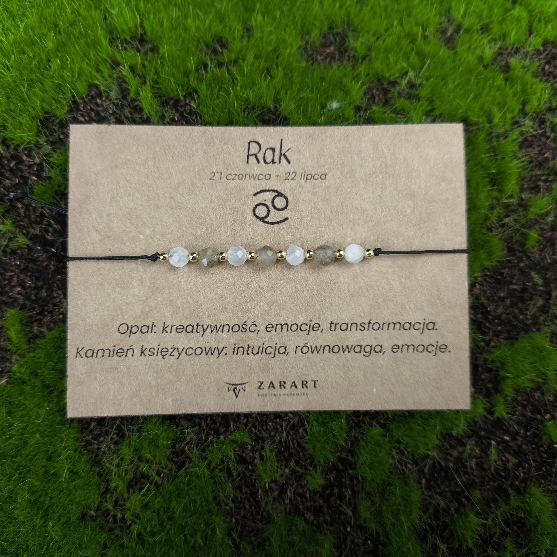 Unikalna, ręcznie wykonana bransoletka stworzona specjalnie dla osób spod znaku Raka. Składa się z naturalnych kamieni, które wspierają cechy tego znaku.