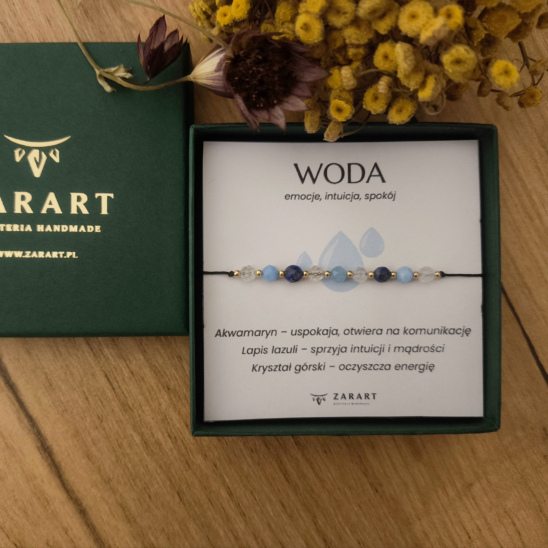Woda to żywioł uczuć, głębi i oczyszczenia. Bransoletka inspirowana tym elementem pomaga odnaleźć równowagę emocjonalną i spokój wewnętrzny. Jej delikatna energia wspiera intuicję oraz kontakt z samym sobą.