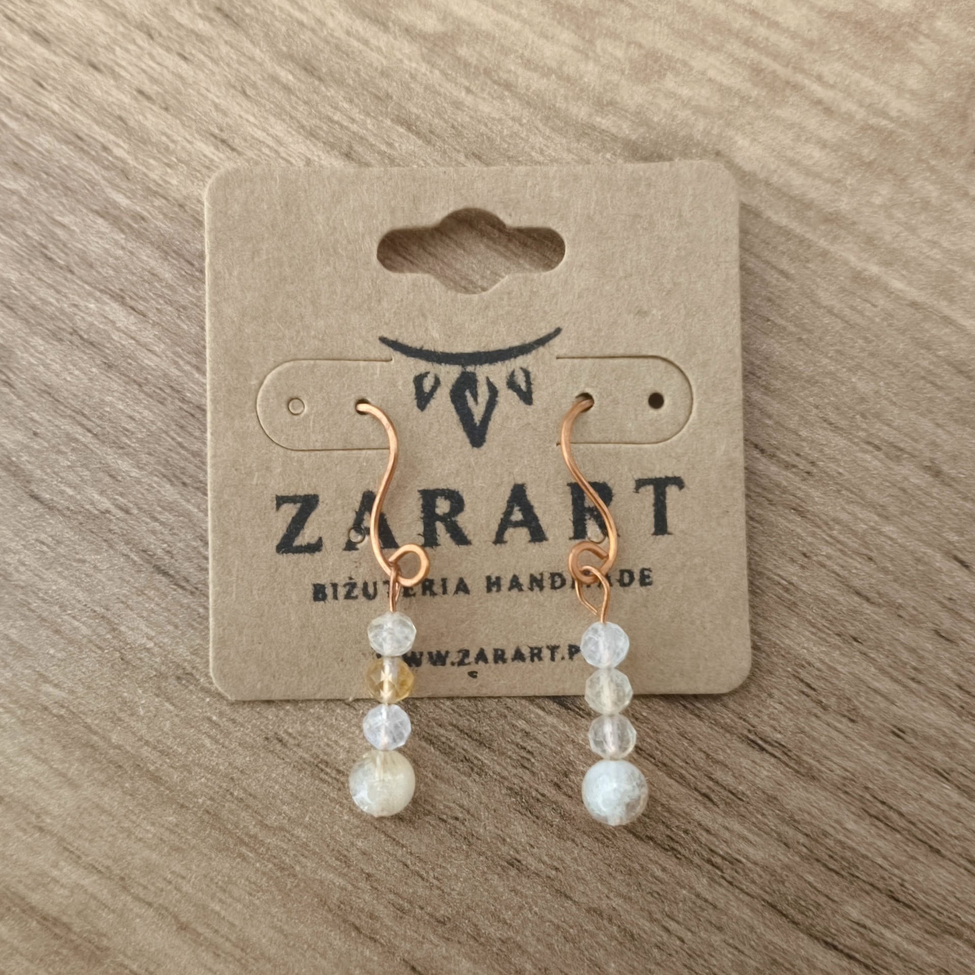Ręcznie tworzone kolczyki miedziane z Cytrynem o wielkościach kamieni 4 i 6mm.