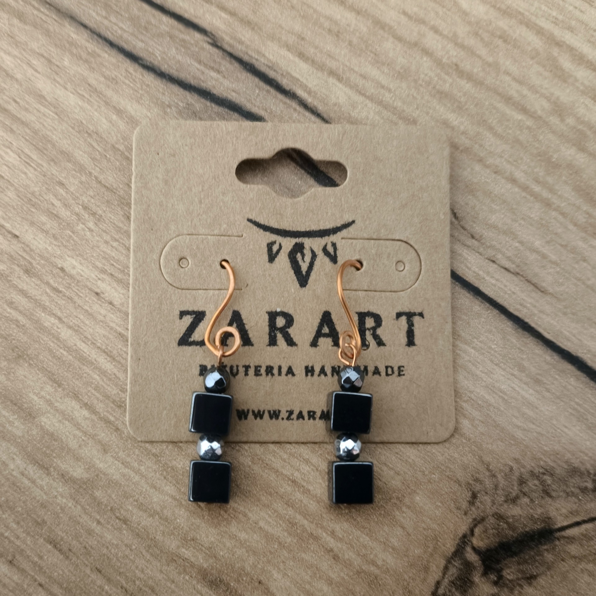 Kolczyki miedziane Hematyt kostki