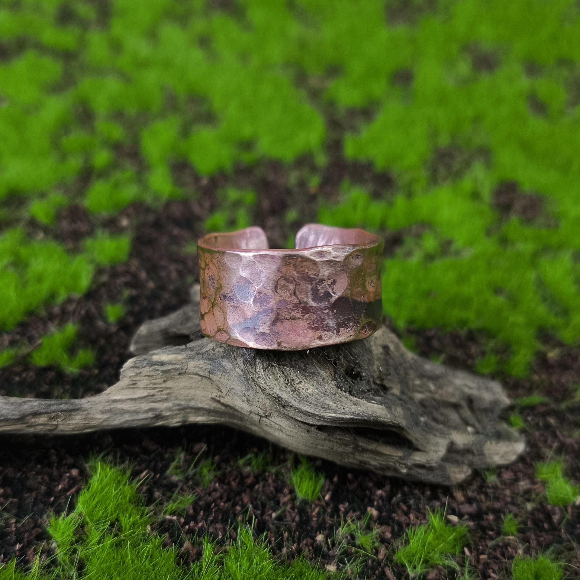Pierścień miedziany, ręcznie wykonany. Młotkowany. Pierścień o rozmiarze ok 18-27 - regulowany.