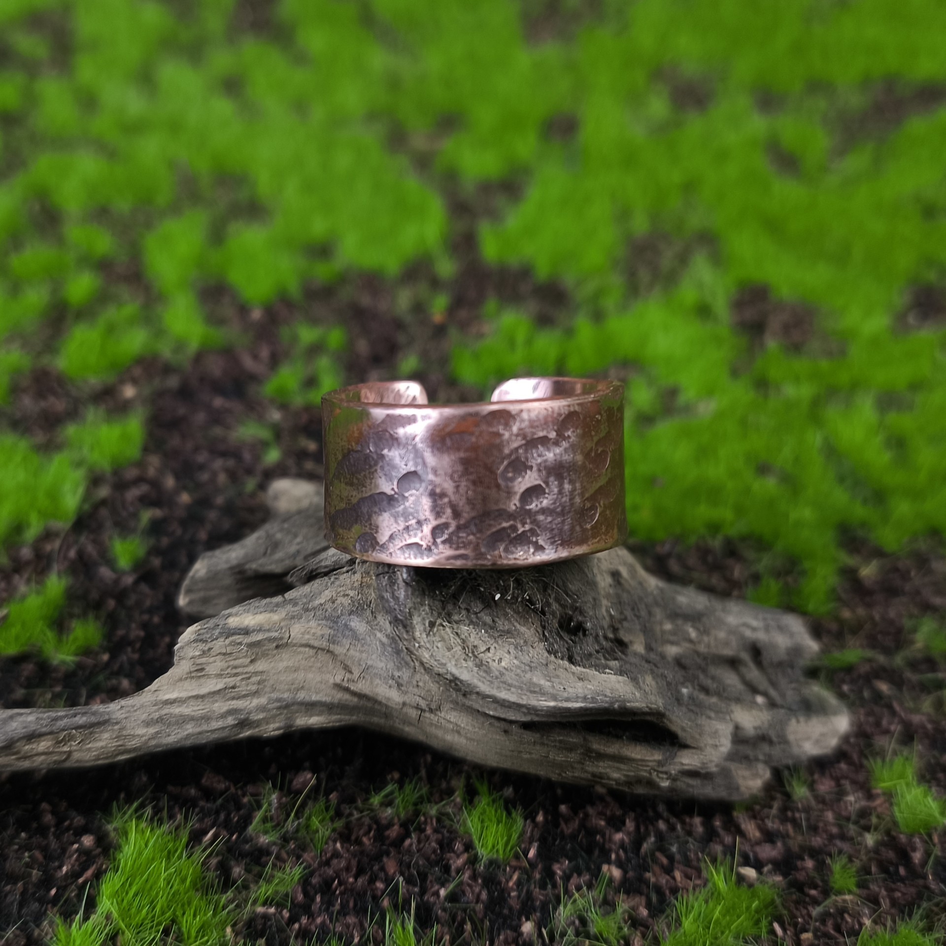 Pierścień miedziany, ręcznie wykonany. Młotkowany. Pierścień o rozmiarze ok 16-22 - regulowany.