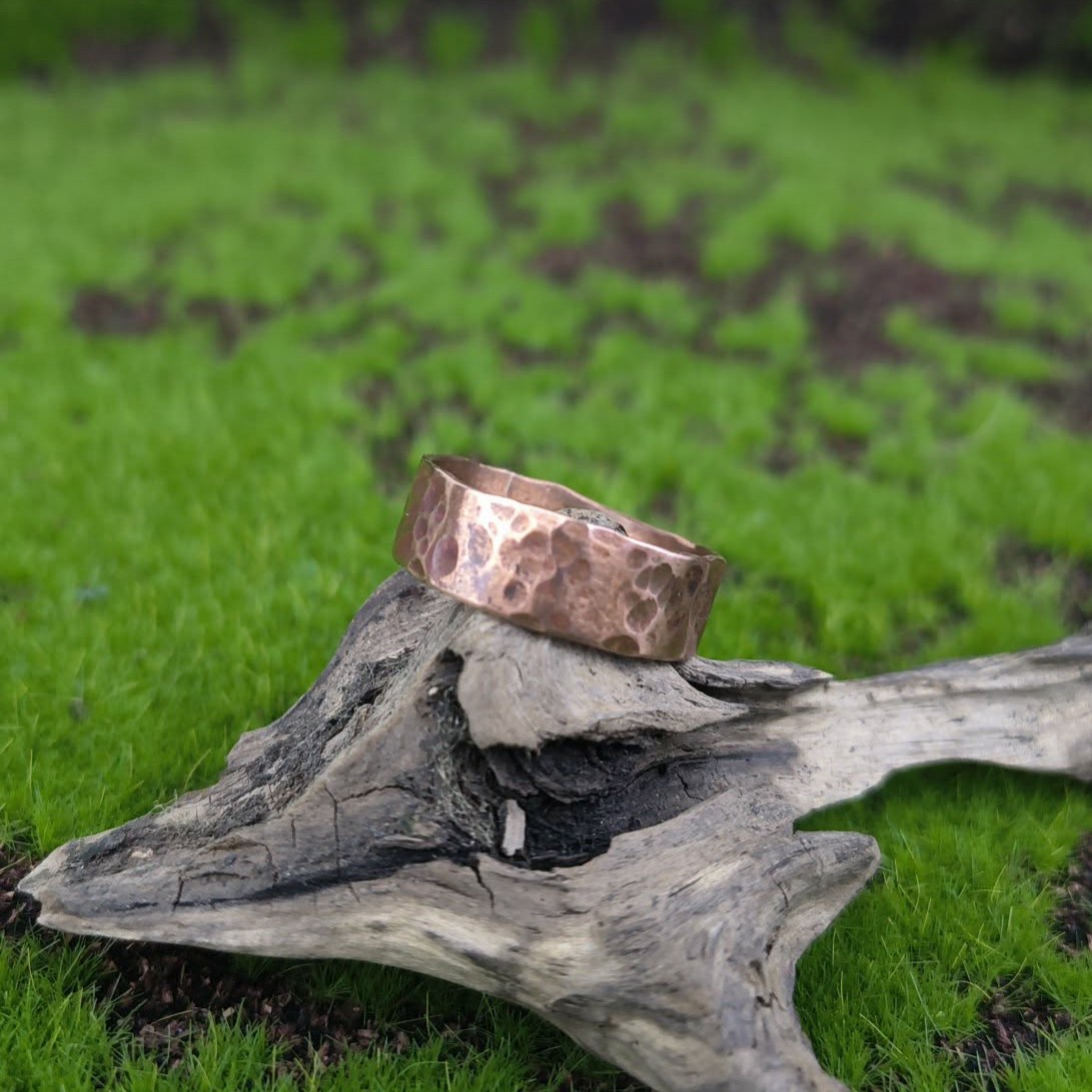 Pierścień miedziany wybijany. Pierścień o rozmiarze ok 21.