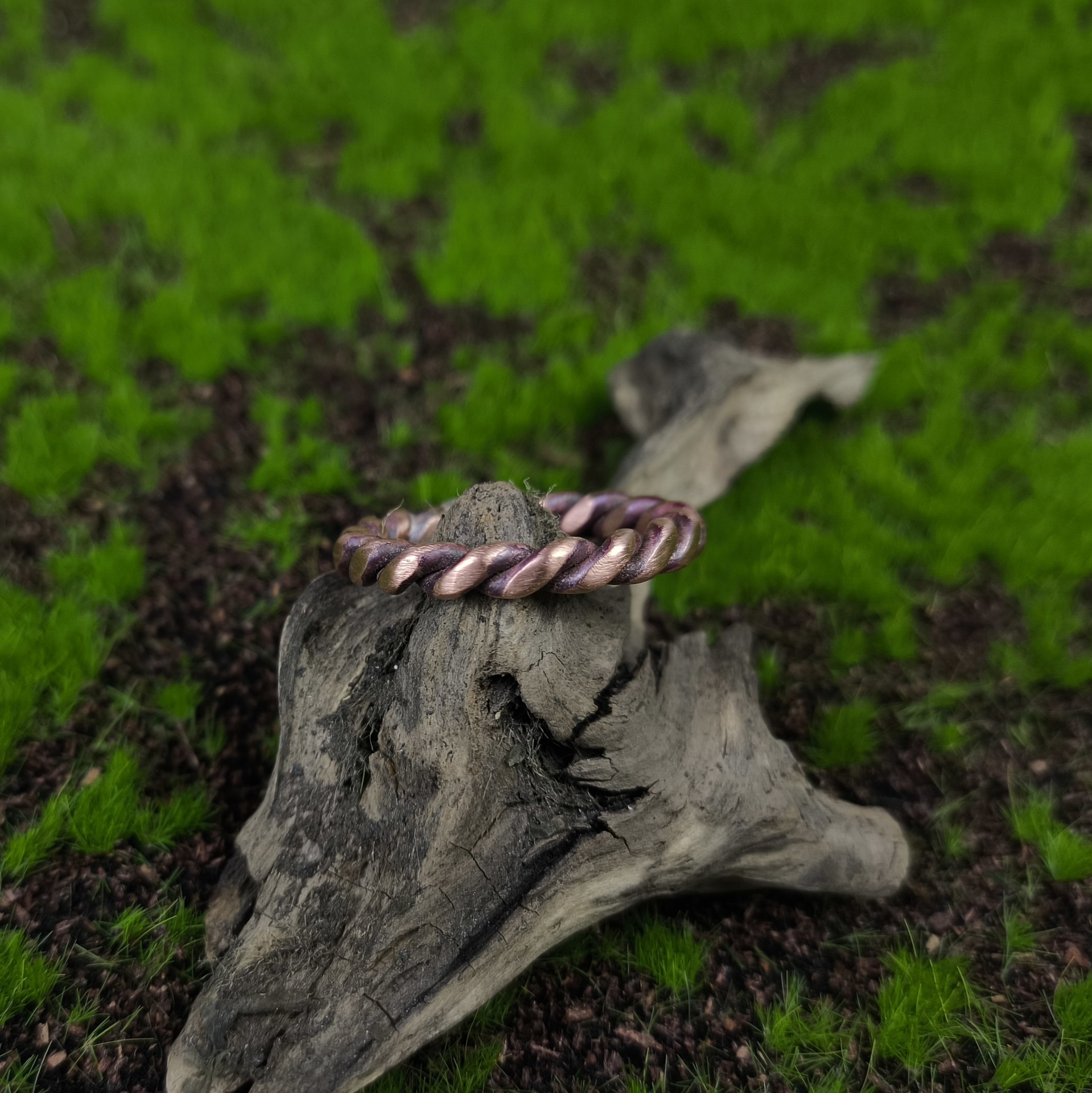 Pierścień miedziany - zaplatany. Ręcznie wykonany. Pierścień rozmiary ok 21,5. Lekko polerowany, z ciemniejszymi prześwitami, które nadają mu charakteru.